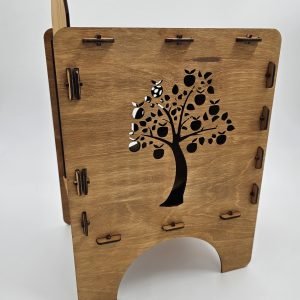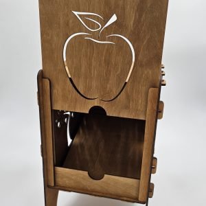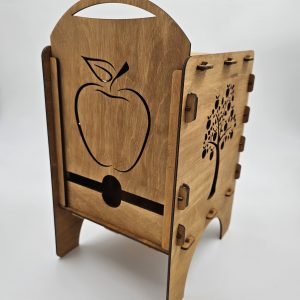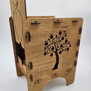 Sulčių dėžutė pagaminta iš beržo lukštais padengtos medienos plokštės. Daugiakartinio naudojimo patogi dėžutė sultims, lengva išimti ir įdėti sulčių pakuotę. Dėžutė turi integruotą nuolydį, todėl sultys lengvai bėga netgi kai pakuotėje liko mažai sulčių. Po kraneliu telpa didelis puodukas. Puiki dovana arba interjero dekoro detalė Jūsų namams.