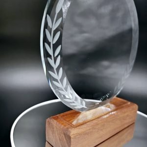 Šis modernus ir elegantiškas stiklinis apdovanojimas, pagamintas iš aukštos kokybės grūdinto stiklo, yra puikus pasirinkimas išreikšti pripažinimą ir įvertinimą. Skaidrus poliruotas paviršius ir rafinuotos linijos suteikia prabangos pojūtį.